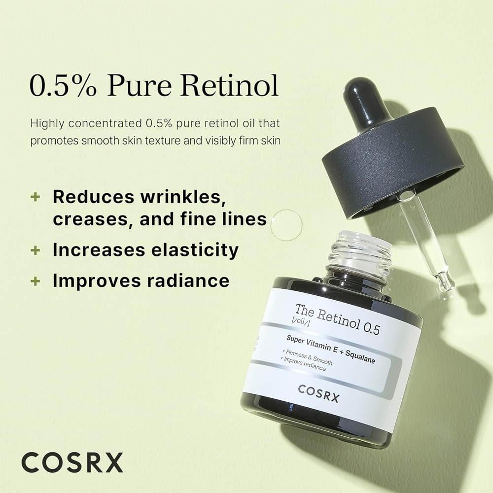COSRX Retinol Oil 0.5% is a skincare product specially formulated to combat the signs of aging and improve skin elasticity. This oil contains 0.5% pure retinol, known to promote skin cell renewal and stimulate collagen production, helping to reduce the appearance of wrinkles and fine lines. Additionally, the formula is enhanced with plant-derived squalane oil, which hydrates and protects the skin from dryness, and vitamin E, which provides antioxidant protection and promotes overall skin health. Ideal for those who have previous experience with retinol products and want to enhance the youthfulness and vitality of their skin.