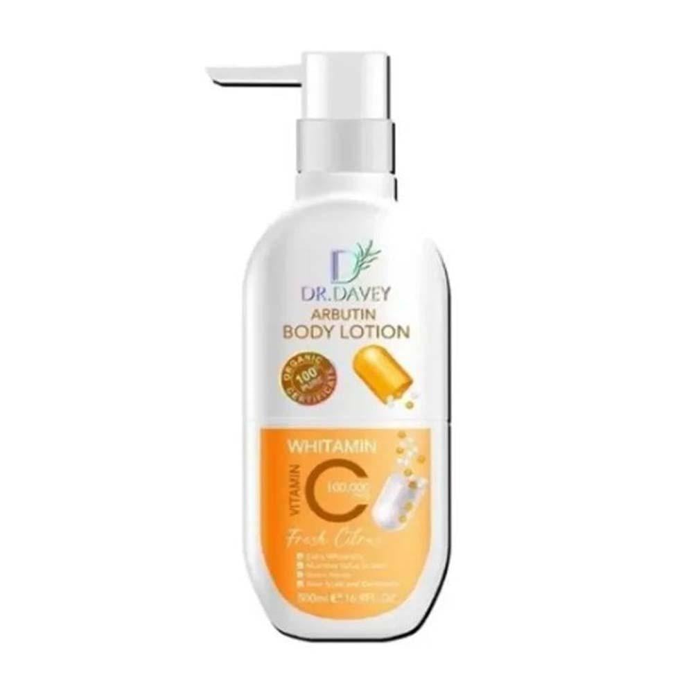 Dr. Davey's multi-benefit whitening and moisturizing body lotion with Vitamin C and Arbutin aims to deeply moisturize and nourish the skin while working to lighten and unify skin tone. Its effective formula makes it suitable for daily use to achieve smooth and radiant skin.
