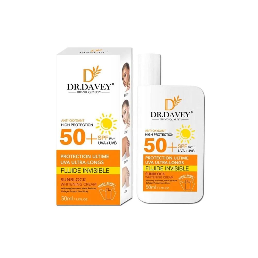 Dr. Davey Whitening Sunscreen Cream SPF 50 is a multi-functional cream that combines skin whitening and sun protection properties and is distinguished by its light formula, suitable for all skin types.