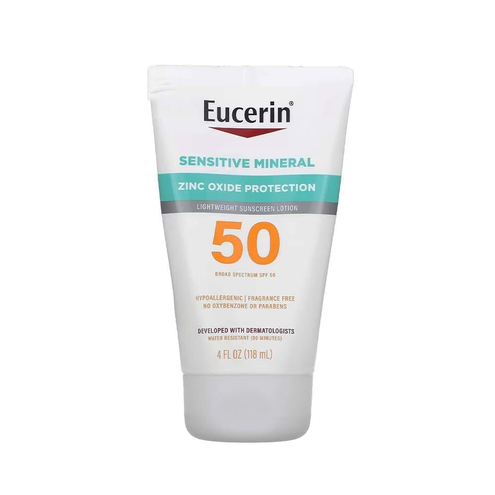 Eucerin Sensitive Mineral Zinc Oxide Protection SPF50 Sunscreen Lotion - 118 ml is specifically designed for sensitive skin.