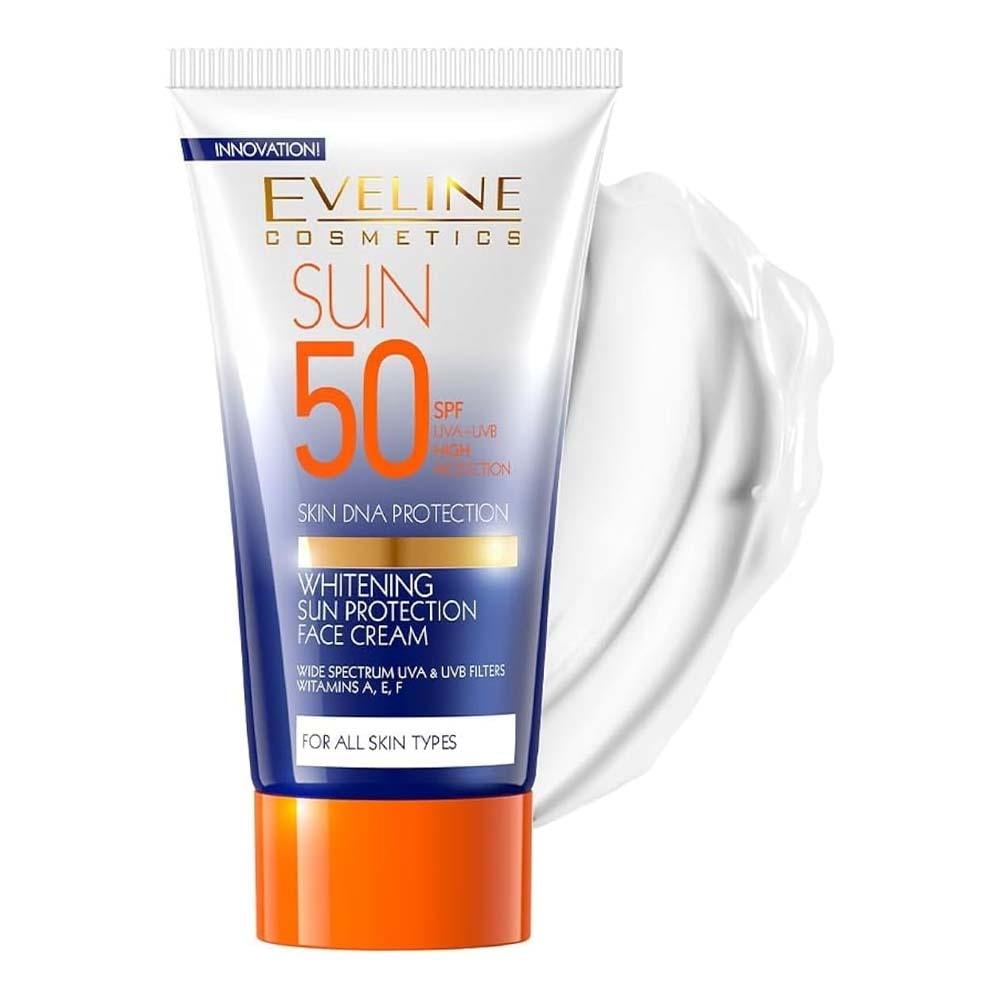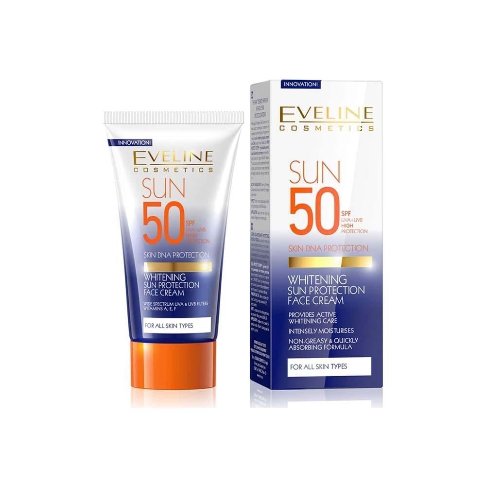Eveline Cosmetics SPF 50 Advanced Skin Care Whitening Cream provides effective protection from the sun's harmful rays while promoting skin lightening and unifying skin tone. This cream contains a balanced formula that includes effective ingredients such as hyaluronic acid, natural plant extracts, and vitamins that work together to brighten the skin, moisturize it, and protect it from UV rays.