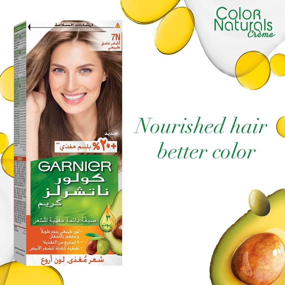 Garnier Color Naturals hair dye provides perfect coverage of gray hair and a rich, long-lasting color. The dye contains a nourishing conditioner made of a blend of 3 natural oils (olive oil, avocado oil, and shea oil) that helps nourish and protect the hair during the dyeing process. The dye gives your hair shine and softness with a natural, attractive color.