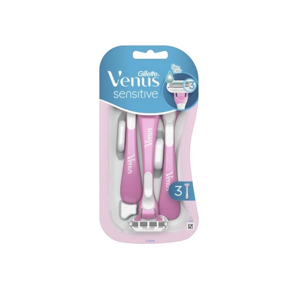 Gillette Venus Sensitive Women's Replacement Razor with 3 blades that conform to body contours and soft guard pads help protect skin from nicks and cuts for a smooth shave