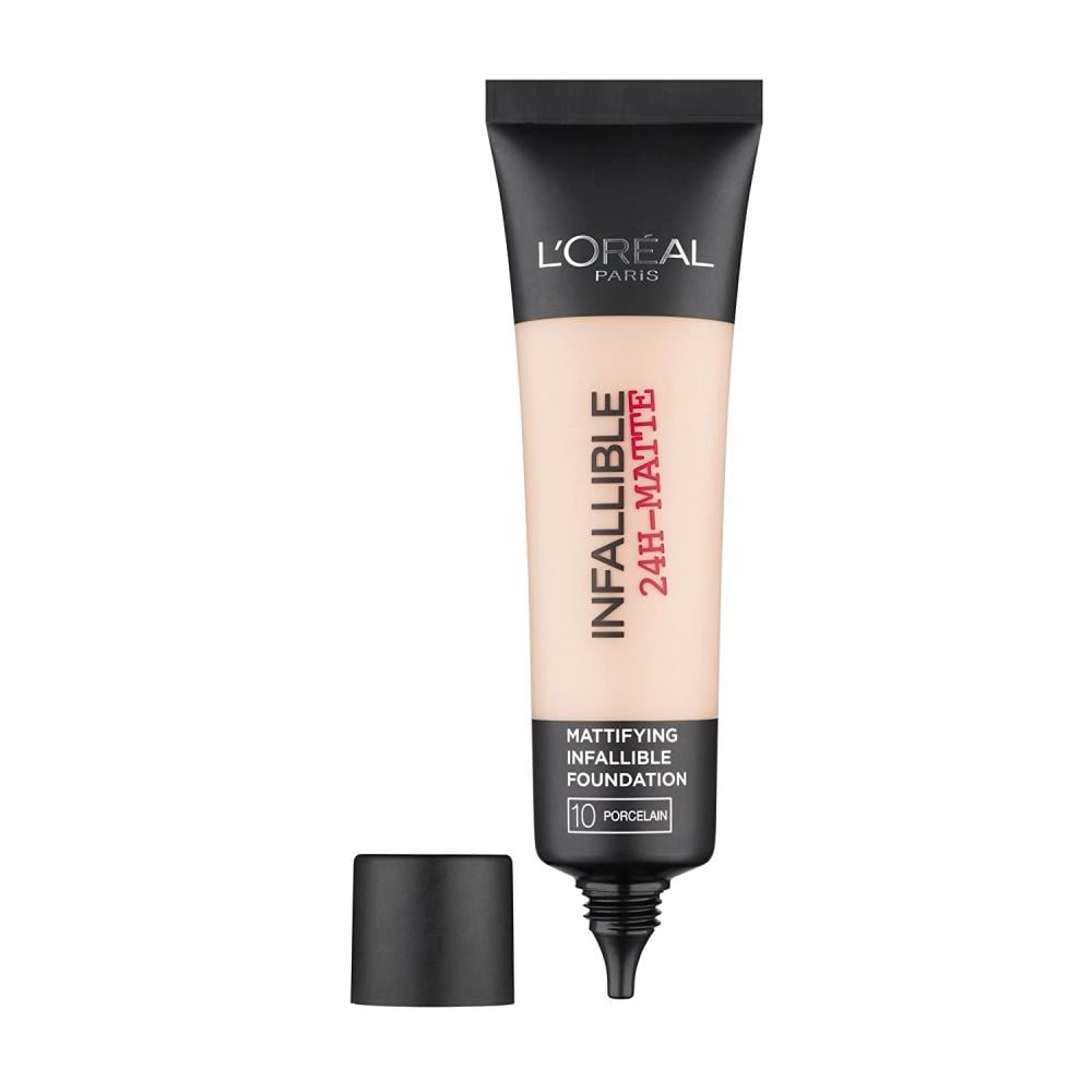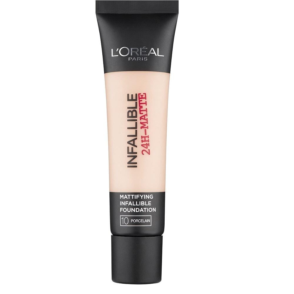 L'Oreal Paris Infallible is a long-wearing foundation with 24-hour matte coverage and a natural second-skin finish. Formulated with ultra-clear serums and high-shine powders to deliver ultra-resistant matte coverage, while fighting shine for up to 24 hours. With a high concentration of pigment in a smooth liquid formula, the foundation blends naturally with your skin for a barely-there, full-coverage feel.
