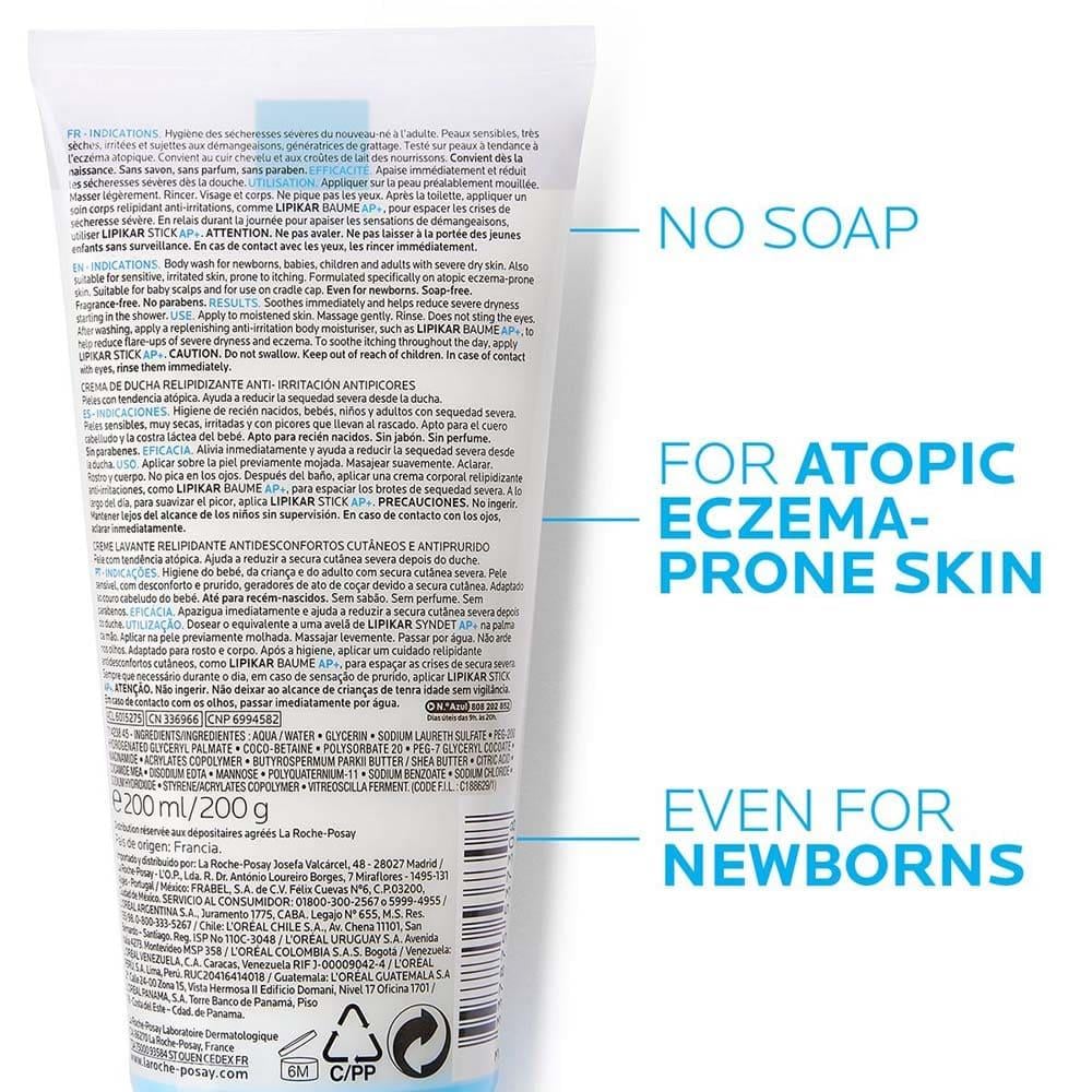 La Roche-Posay Lipikar Syndt +AP is a creamy wash for newborns, infants, children and adults with eczema-prone skin Suitable for sensitive and itchy skin Suitable for infant scalps Instantly soothes the skin Helps reduce severe dryness starting from bathing Also suitable for sensitive, very dry and itchy skin Tested Under pediatric supervision and tested under ophthalmological supervision, high tolerance allergy test.