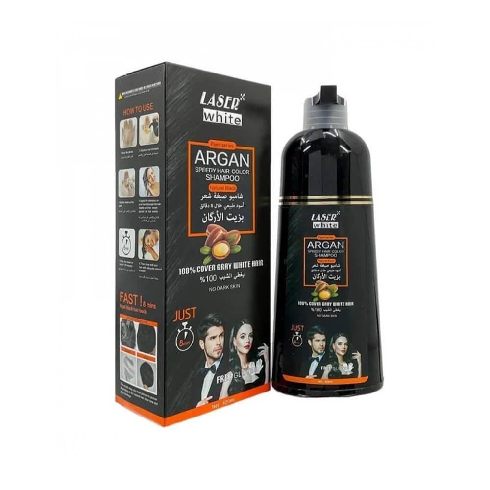 Laser White Argan Oil Hair Dye Shampoo Natural Black is a high-quality hair product that provides a quick and easy way to color your hair at home. This shampoo is specially designed to provide vibrant color, while nourishing and strengthening your hair. The product is suitable for all hair types and is ideal for those looking for a convenient and affordable way to color their hair. The shampoo contains natural ingredients such as argan oil, which is known for its moisturizing and nourishing properties and is rich in vitamins and antioxidants. The formula also contains a unique blend of hair-strengthening proteins that help repair your hair and protect it from damage.