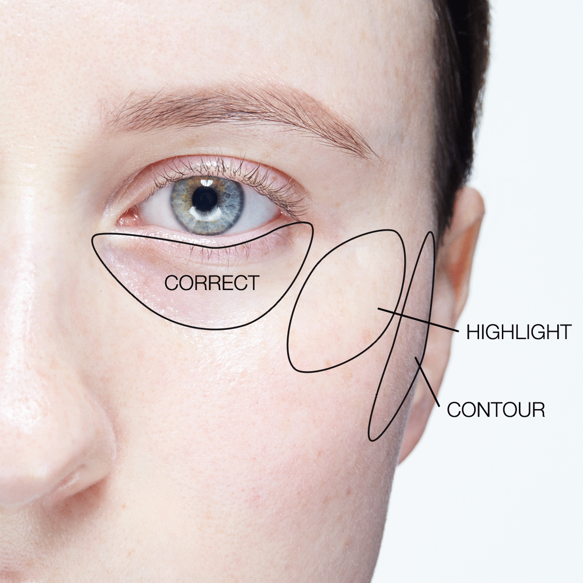 As a highlighter, select two shades lighter than the concealer shade and place on high points of the face.
