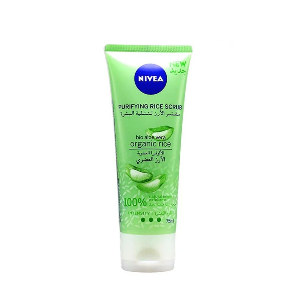 NIVEA Purifying Rice Scrub, enriched with organically grown rice and aloe vera, effectively rejuvenates your skin's appearance. Formulated with 100% natural ingredients free of microplastics, it intensely exfoliates without causing irritation. It also eliminates blackheads, deeply cleanses and purifies pores, and removes excess oil for a matte complexion.