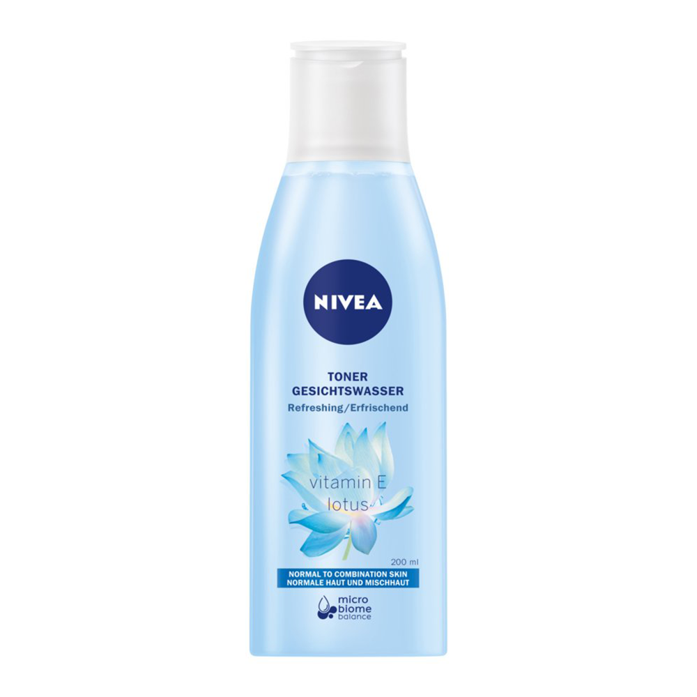 NIVEA Refreshing Toner is ideal for daily care for normal and combination skin. This toner is designed to leave skin feeling clean and refreshed without drying it out. Thanks to its formula enriched with vitamin E and lotus flower extract, it deeply cleanses the skin and removes impurities and traces of makeup. Additionally, the toner helps maintain the skin's natural moisture balance, preventing dryness and leaving it feeling soft and refreshed. Suitable for sensitive skin, the toner is alcohol-free, making it ideal for daily use. It also helps improve skin elasticity and even out skin tone, making it appear younger and more vibrant. With regular use, the skin becomes better able to absorb daily care creams, enhancing their effectiveness.