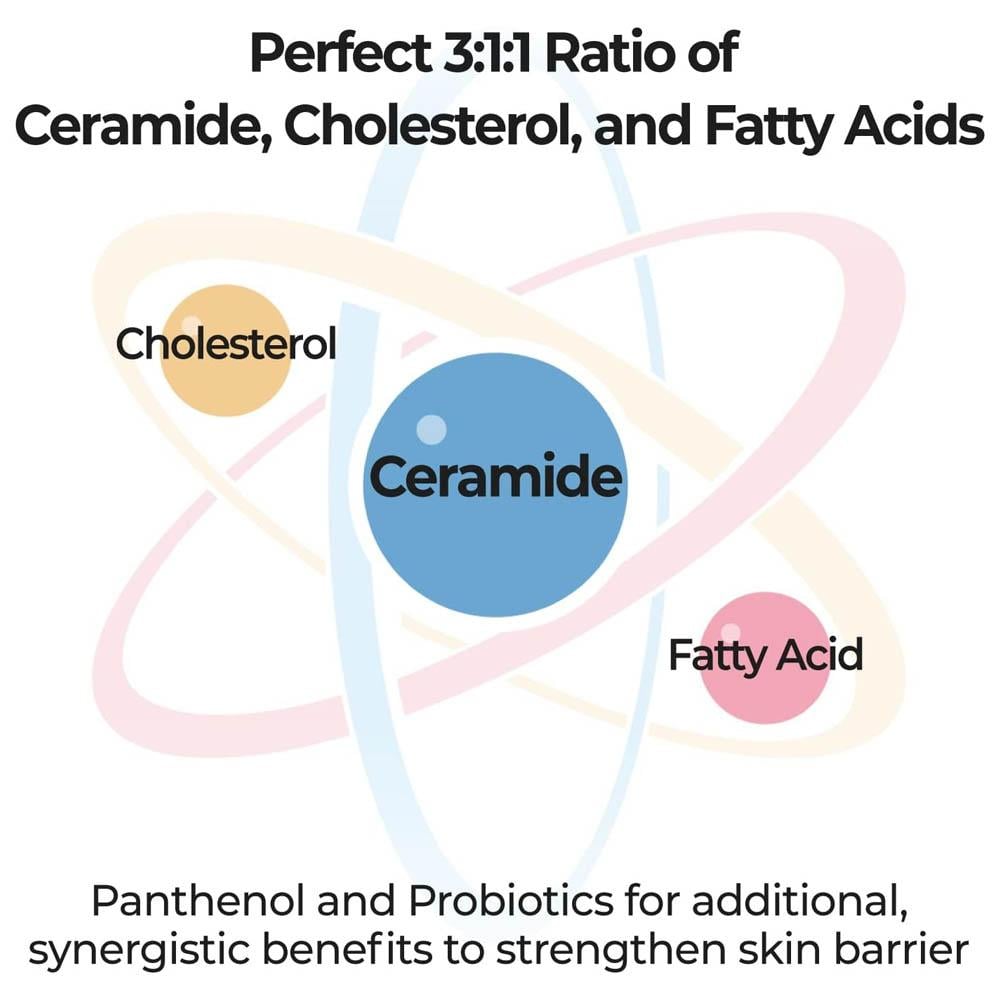 Strengthening the skin barrier The serum contains a blend of ceramides, cholesterol, and fatty acids in a ratio of 3:1:1, which enhances the strength of the skin barrier and protects it from harmful environmental factors.