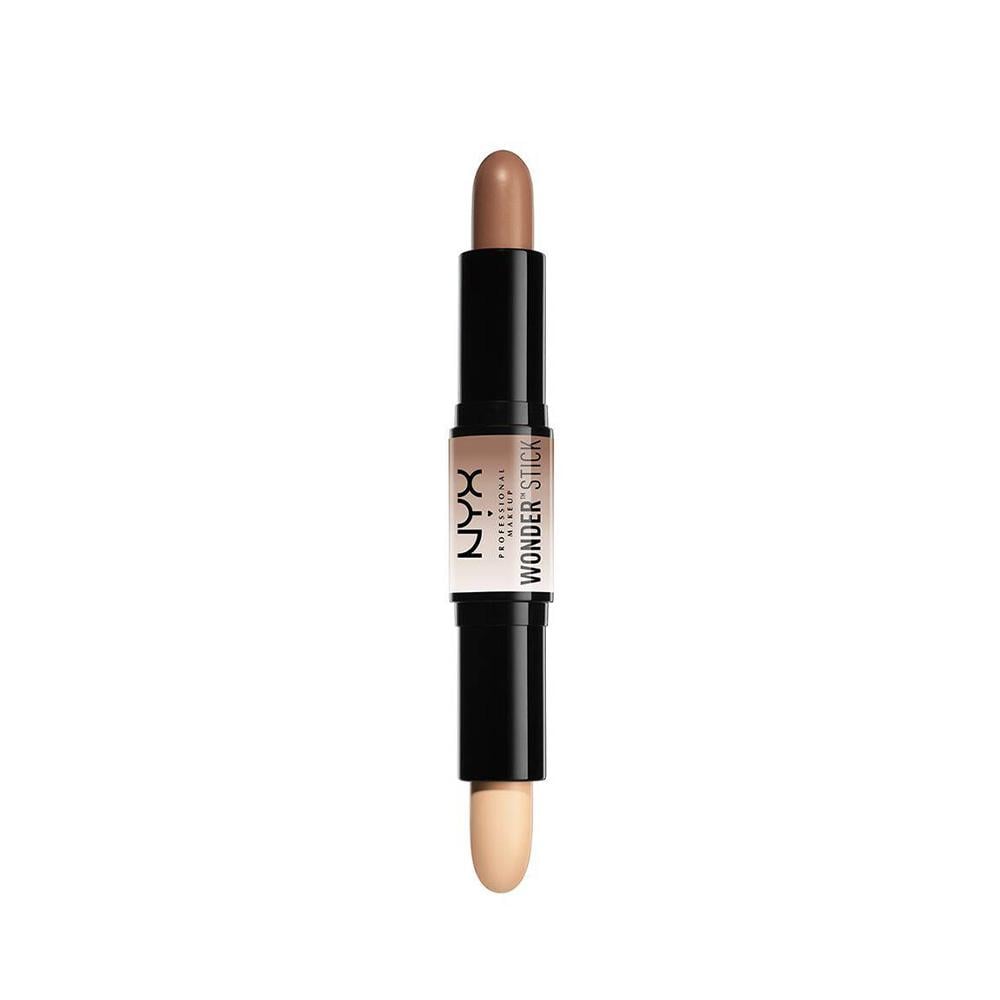 NYX Wonder Stick is a dual-use contour and highlight stick, designed to sculpt and illuminate facial features with ease. It contains a dark-colored contour tip to define and sculpt the face and a lighter-colored highlighting tip to highlight desired areas.
