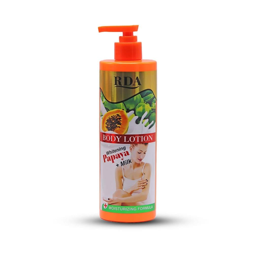RDA Papaya and Milk Whitening Body Lotion is a skin care product specially designed to lighten and even out skin tone. The lotion contains papaya extract known for its exfoliating properties that help remove dead cells, in addition to milk that deeply moisturizes and nourishes the skin.