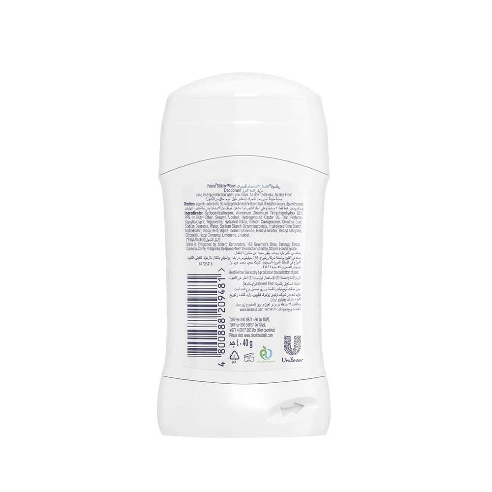 - After showering or on clean, dry skin, apply Rexona Deodorant Stick Shower Fresh to the underarms.