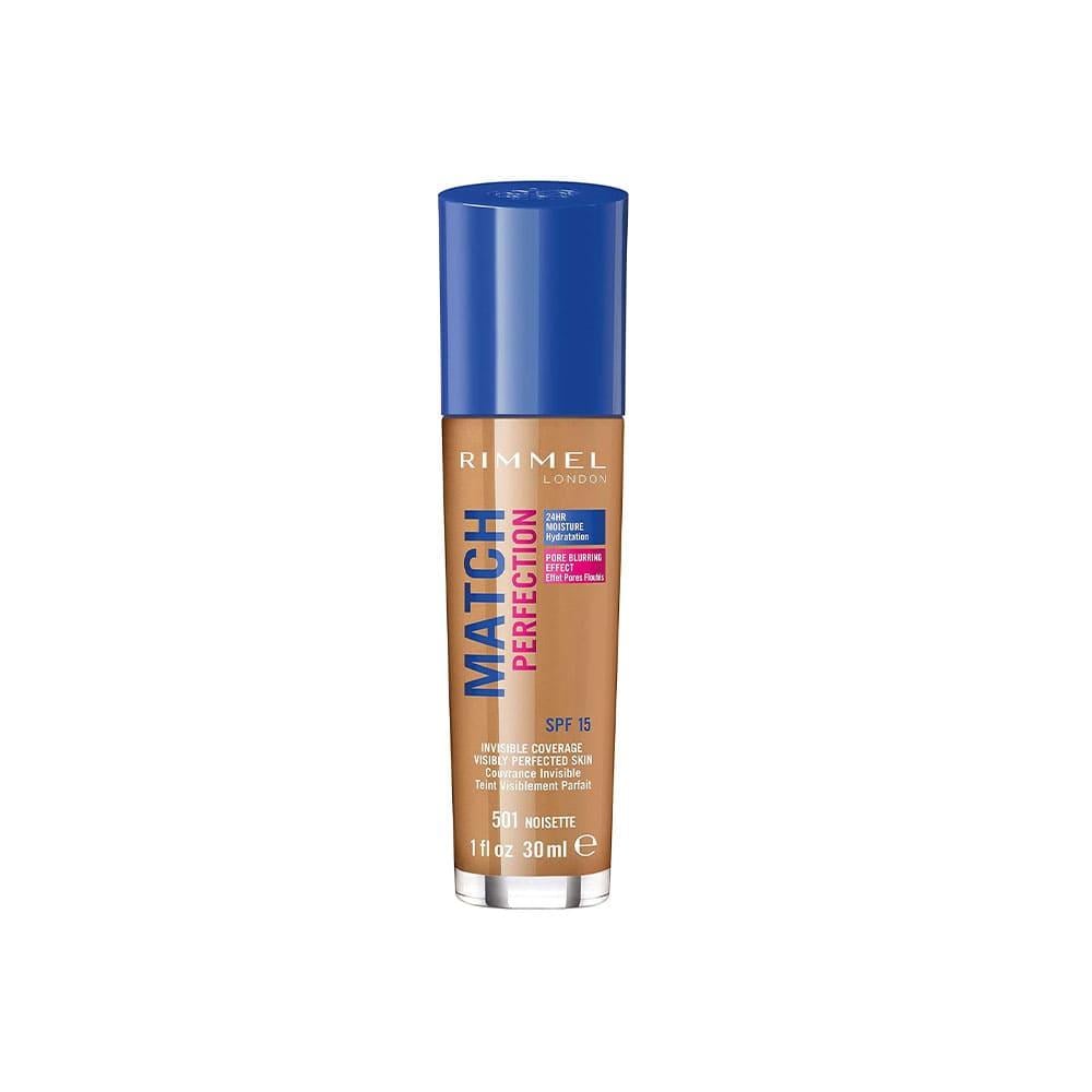 Rimmel London Match Perfection SPF15 Foundation in the shade 501 Noisette is a liquid foundation designed to provide a flawless and natural-looking complexion.