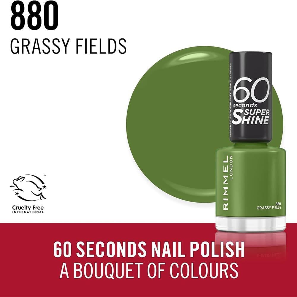 Rimmel London 60 Seconds Super Shine Nail Polish in 880 Grassy Fields features a fast-drying formula that delivers extreme shine.