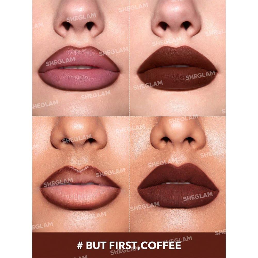 The Sheglam So Lippy Lip Liner in the shade 524 But First Coffee is a versatile lip liner designed to provide precise definition and a smooth application. The shade is a rich, coffee-toned brown that complements a variety of lipstick shades, perfect for creating bold or neutral lip looks.